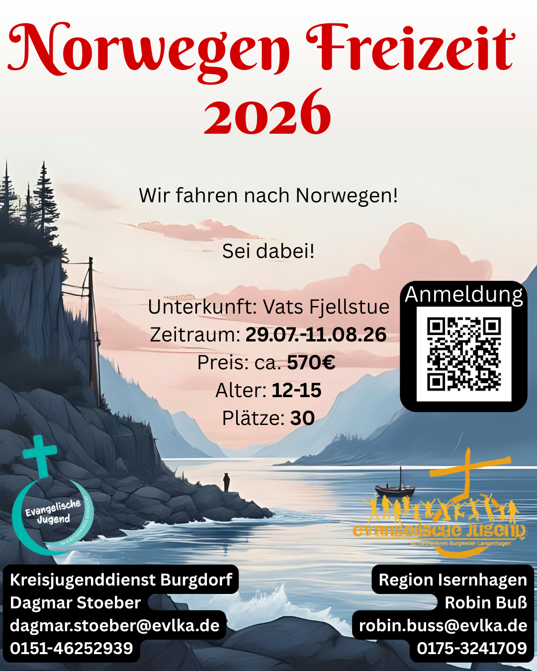 Im Sommer 2026 geht es mit der Evangelischen Jugend auf Reise nach Norwegen und du bist herzlich eingeladen!